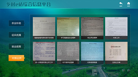 鄉(xiāng)村紅色教育、政務(wù)服務(wù)、村務(wù)信息公開、農(nóng)村數(shù)字金融、鄉(xiāng)村特色、鄉(xiāng)村面對面等6項(xiàng)模塊。